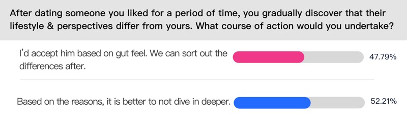And that is probably why most of us chose to go with our gut feelings about someone we like, and choose to work things out slowly. This gut feeling doesn’t come often, does it? So, after dating someone you liked for a period of time, if you gradually discover that this person’s lifestyle and perspectives differ from yours, what will you choose to do?